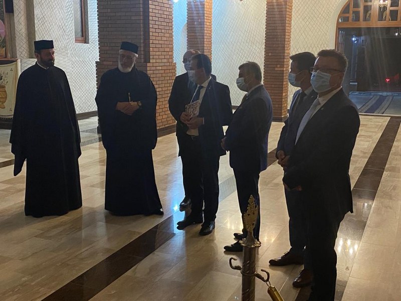 Delegația a fost întâmpinată de Înaltpreasfințitul Părinte Calinic, Arhiepiscop al Argeșului și Muscelului și de părintele consilier eparhial, arhimandrit Caliopie Ichim.