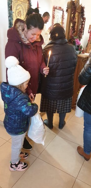 Părintele slujitor Anghel Tănase Marius de la parohia Urluieni – Bârla, protoieria Costești a primit colindătorii care, după ce au cântat, au primit colindețe.