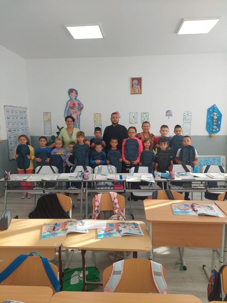 Preoții slujitori Popa Gabriel de la parohia Săpata și Șerban Liviu de la parohia Dealul Bradului, au împărțit 90 de ghiozdane pentru toți copiii din comună care învață la cele două școli.