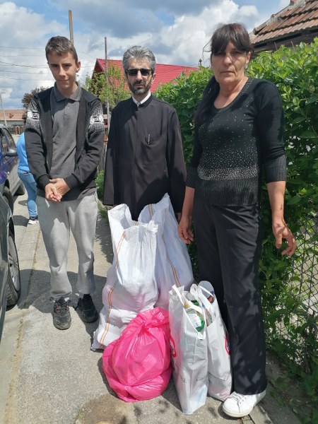 Părintele slujitor Barbu Vasile de la parohia Sfinții Împărați din municipiul Curtea de Argeș, a oferit alimente și dulciuri pentru familii cu mulți copii.