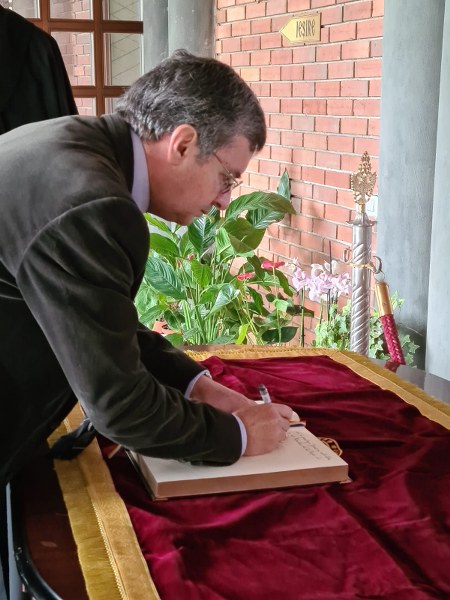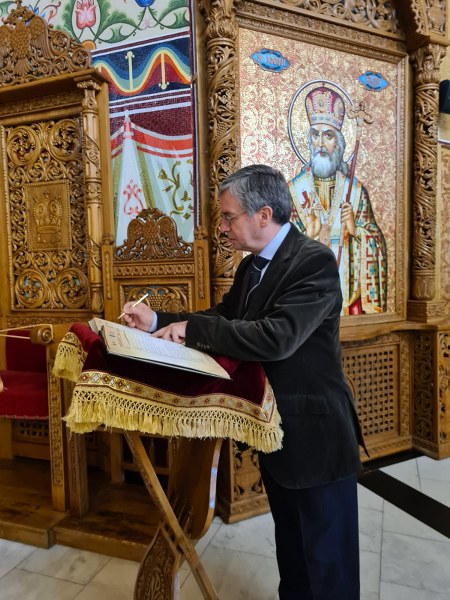 La invitația Înaltpreasfințitului Părinte Calinic, Arhiepiscopul Argeșului și Muscelului, o delegație a Ambasadei Spaniei condusă de ES domnul Manuel Larrotcha Parada, ambasadorul Spaniei în România, a realizat o vizită în cuprinsul Eparhiei. Din această delegație a făcut parte și domnul Petre Roman, fost prim-ministru al României.
