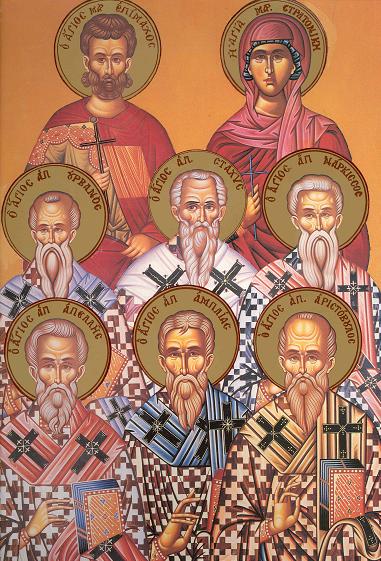Dintre acesti cinci Sfinti Apostoli Stahie a fost pus episcop al Vizantiei de catre Apostolul Andrei, si a zidit si biserica în Arghiropol, la care se aduna nenumarata multime de crestini si-i învata. Si asa vietuind saisprezece ani, cu pace a raposat. Iar Sfântul Apeles ajungând episcop al Iracliei si pe multi aducând la credinta lui Hristos, a luat fericitul sfârsit. Iar Sfintii Amplie si Urban, fiind facuti si ei episcopi, tot de acelasi Apostol Andrei: Amplie cetatii Odisopoleos, iar Urban Machedoniei, si pentru marturisirea în Hristos si a idolilor surpare omorâti fiind de iudei si de elini si-au dat fericitele lor suflete lui Dumnezeu. Iar Narcis fiind facut episcop al atenienilor si în multe feluri fiind chinuit, si-a dat si el sufletul lui Dumnezeu, pentru Care si-a varsat si sângele cu osârdie.
