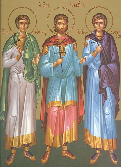 În această lună, în ziua a nouăsprezecea, pomenirea Sfinţilor Mucenici Trofim, Savatie şi Dorimedont.