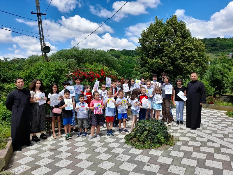 Preoții slujitori Iriminescu Tiberiu și Stancu Gheorghe Sabin au vorbit copiilor despre istoriul bisericii, după care tinerii au pictat, bucuroși fiind că pot organiza o expoziție cu lucrările pe care le-au făcut.