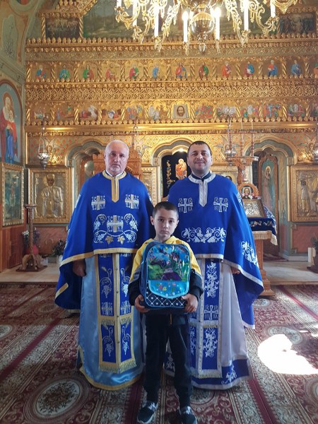 Preoții slujitori Comandașu Constantin Cătălin și Grigorescu Petre de la parohia Domnești de Jos, protoieria Curtea de Argeș, au oferit rechizite și ghiozdan pentru un elev.