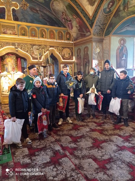 Părintele slujitor Popescu Constantin de la parohia Cotești, protoieria Câmpulung Muscel a primit colindătorii care, după ce au colindat, au primit daruri.