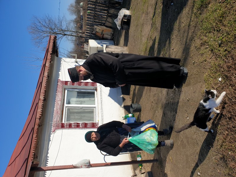 Părintele slujitor Dan Stancu de la parohia Glavacioc, protoieria Costești, a venit în ajutorul unei persoane în vârstă, căreia i-a oferit alimente pentru traiul zilnic.