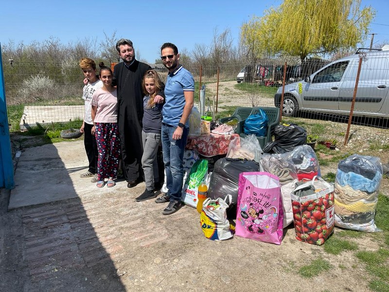 Părintele slujitor Marius Săndulescu de la parohia Sfântul Gheorghe II, municipiul Pitești, a dăruit alimente pentru persoane defavorizate social.